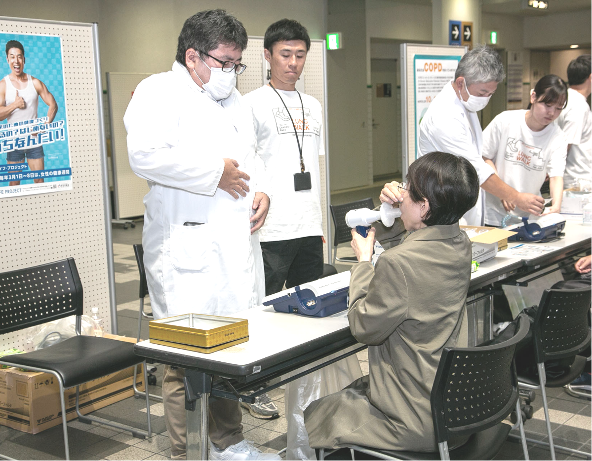 スパイロメーターを使って、肺の「年齢」を測定する「肺年齢検査体験」を実施しました。この体験を通じて、参加者の皆さんに早期の肺検査がいかに重要か知っていただくことができました。