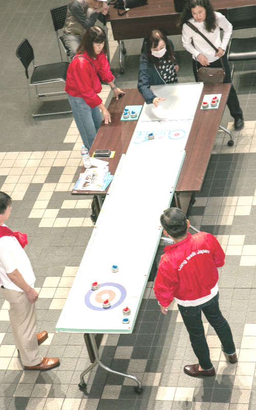 NPOカーレットジャパン協会の指導協力を得て、「卓上」でできるカーリングのカーレットを今年も実施。体力に自信があるなしに関係なく、体を動かす楽しみを味わえました。